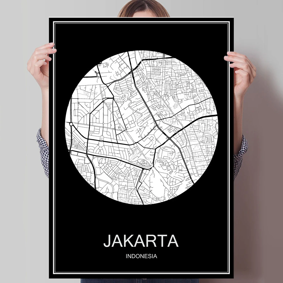 Modern poster JAKARTA World City map Oil Painting Canvas Coated …
