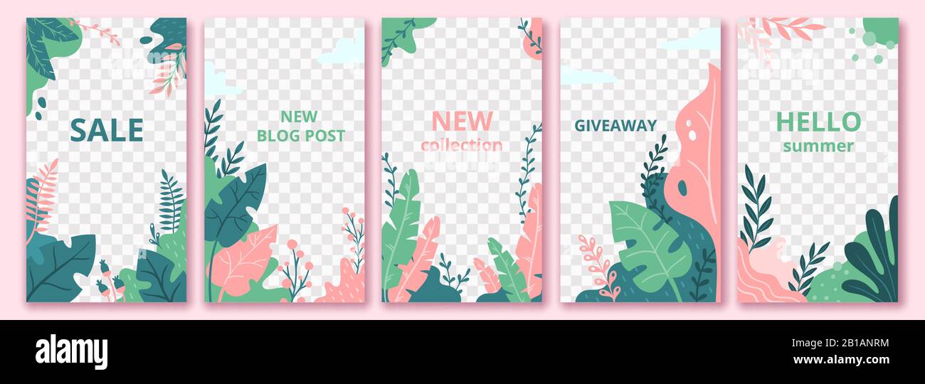 Floral stories template. Garden flora poster, flowers composition layout and trendy social media story templates vector set Stock Vector Image & Art - Alamy