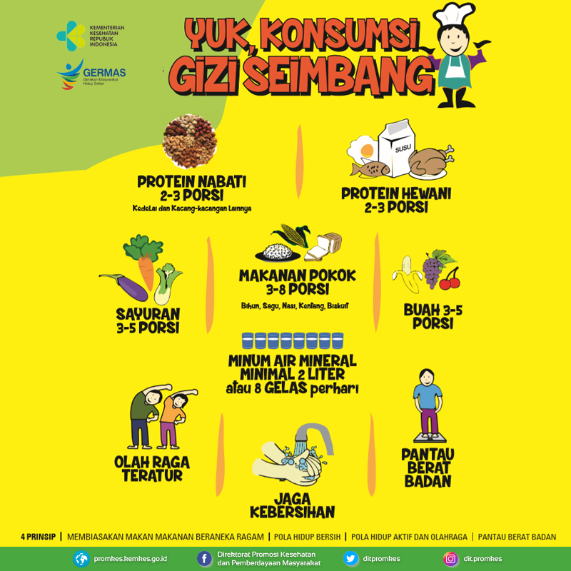 Direktorat Promkes no Twitter: “Membiasakan pola hidup sehat bisa dimulai dengan mengkonsumsi gizi seimbang, jangan lupa juga untuk berolahraga dan memantau berat badan supaya terhindar dari penyakit tidak menular #GiziSeimbang #GERMAS #CERDIK…