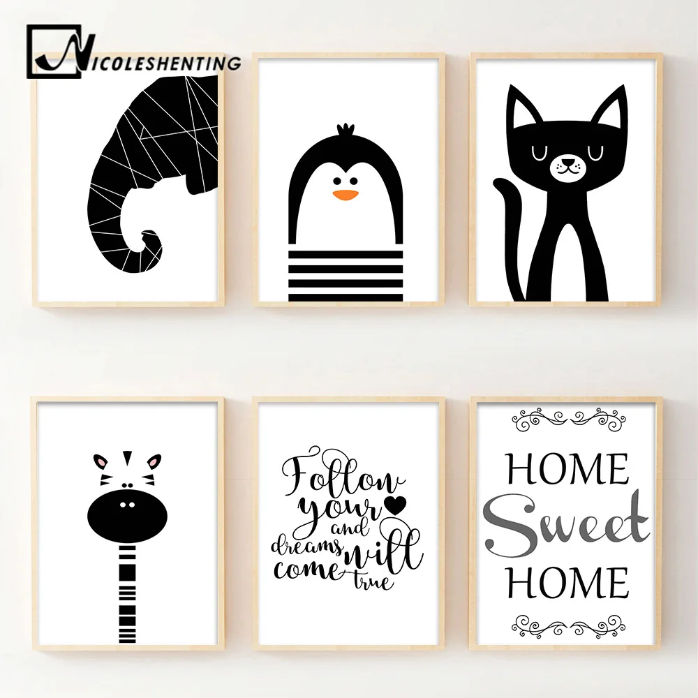 Kawaii Penguin Gajah Giraffe Art Minimalis Kanvas Poster Print Kartun Hewan Gambar Bayi Anak Kamar Nursery Dekorasi|giraffe art|art canvascanvas poster - AliExpress
