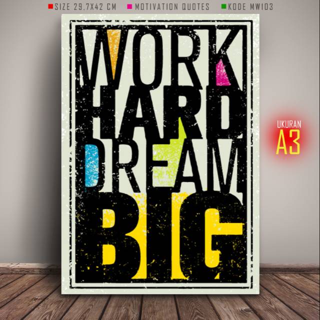 Poster Motivasi Jumbo A3 WORK HARD DREAM BIG Pajangan Inspiratif …