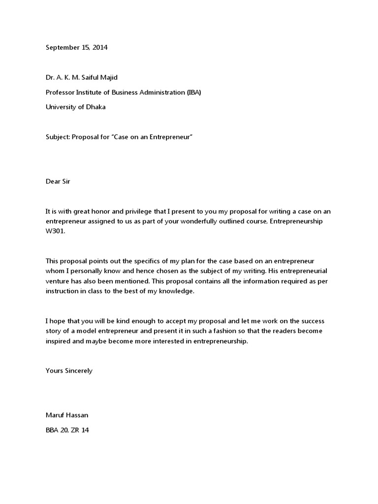 Proposal for Entrepreneur | Entrepreneurship | Business