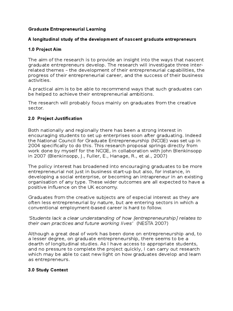 Proposal for Graduate Entrepreneurial Learning | Entrepreneurship …