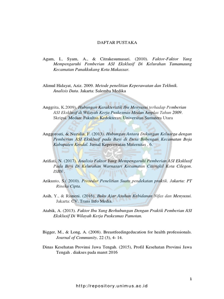 DAFTAR PUSTAKA FAKTOR – FAKTOR YANG BERHUBUNGAN DENGAN PEMBERIAN ASI EKSKLUSIF DI KECAMATAN KARANGMALANG KABUPATEN SRAGEN.