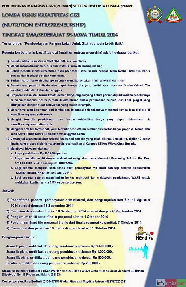 LOMBA BISNIS KREATIFITAS GIZI TINGKAT SMA/SEDERAJAT SE-JAWA TIMUR 2014