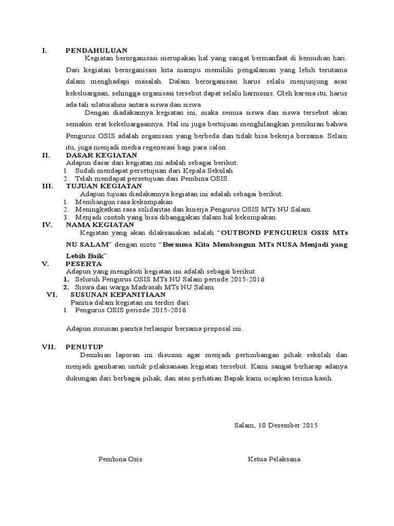 DOC) Proposal Kegiatan Outbond OSIS | Alfi Erisa - Academia.edu