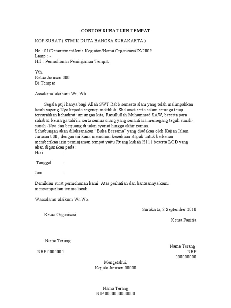 DOC) CONTOH SURAT PERMOHONAN PINJAM TEMPAT | Josiah Onasis - Academia.edu