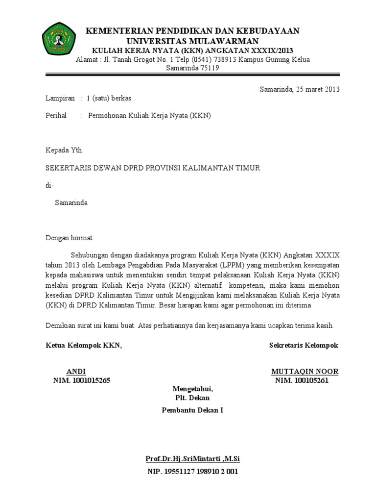 Proposal Perijinan Tempat Kkn