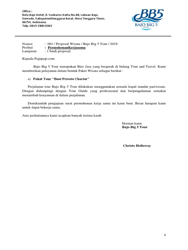Contoh Proposal Kerjasama Tour And Travel - Aneka Macam Contoh