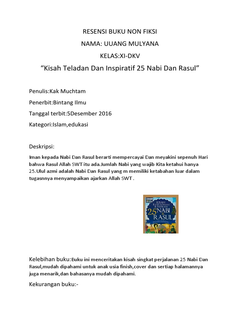 Contoh Resensi Buku Kisah 25 Nabi Dan Rasul - Temukan Contoh