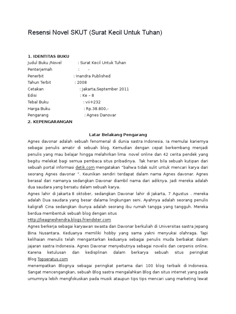 DOC) Resensi Novel SKUT (Surat Kecil Untuk Tuhan | Fiyya SL - Academia.edu