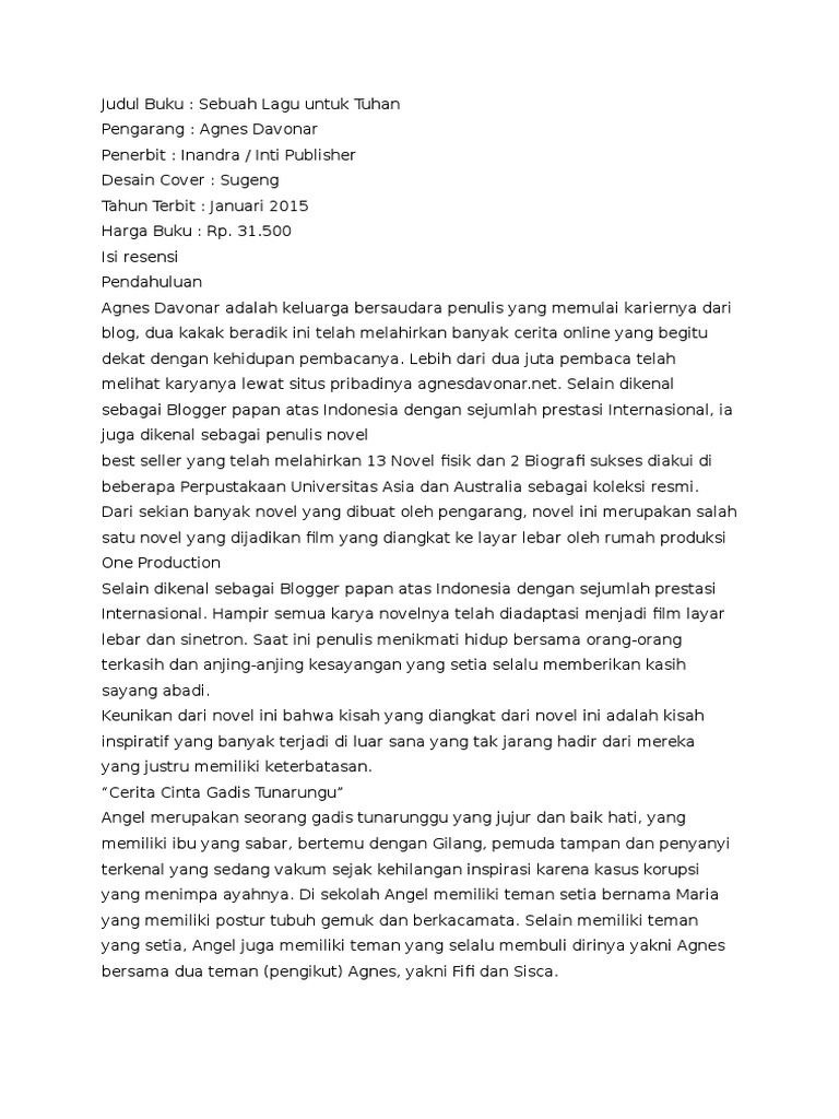Resensi Sebuah Lagu Untuk Tuhan
