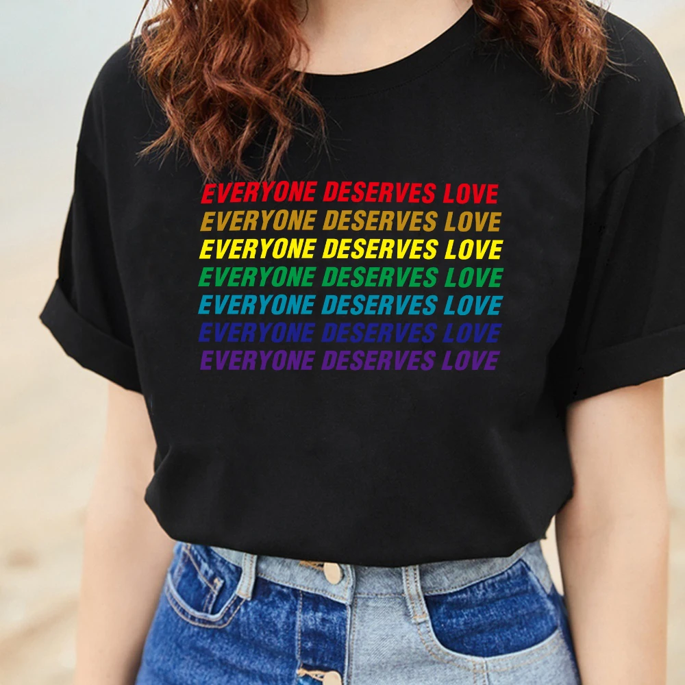 Regenboog Kleur T Shirt Tumblr LGBT Gay Pride Slogan Tee Zomer Stijl Mode Top Tee Iedereen Verdient Liefde| | - AliExpress