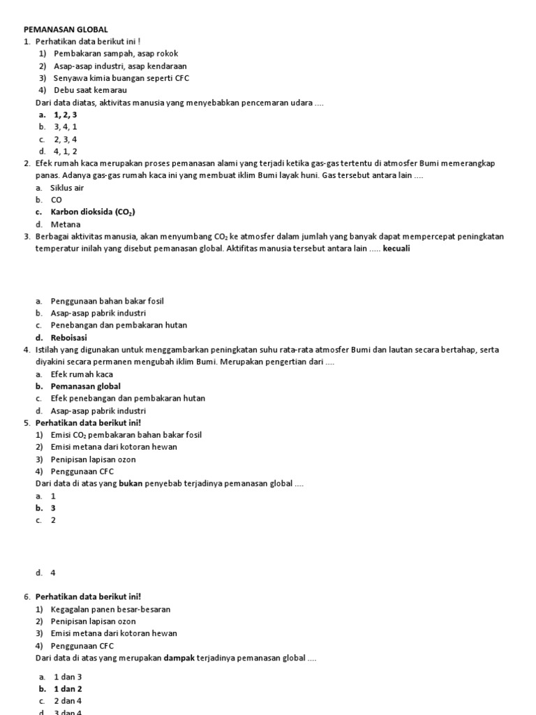 40 Soal Pilihan Ganda Pemanasan Global dan Jawabannya - Muttaqin id