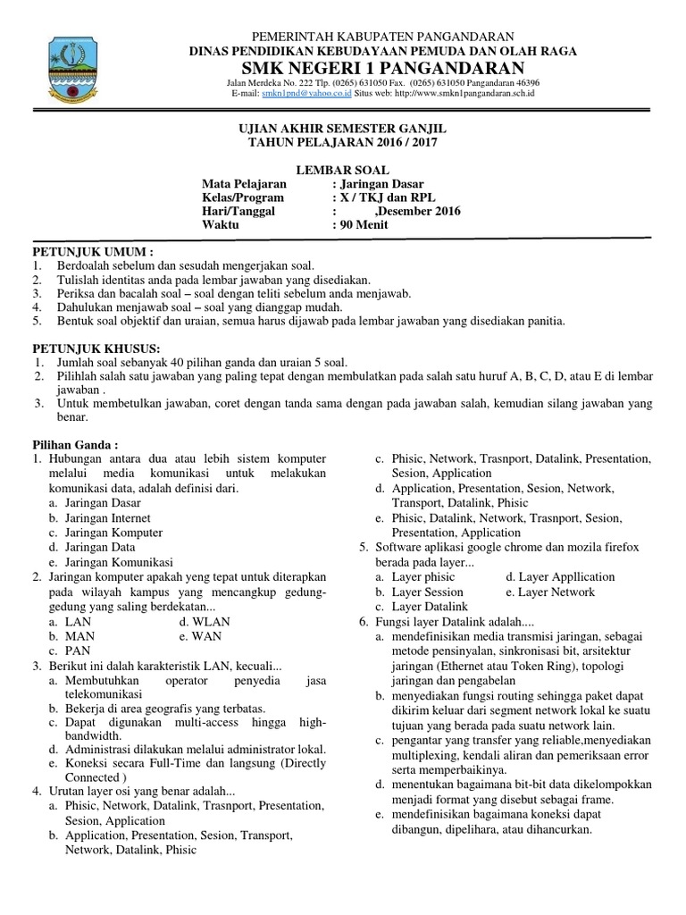 Soal Jaringan Dasar SMK Kelas X TKJ