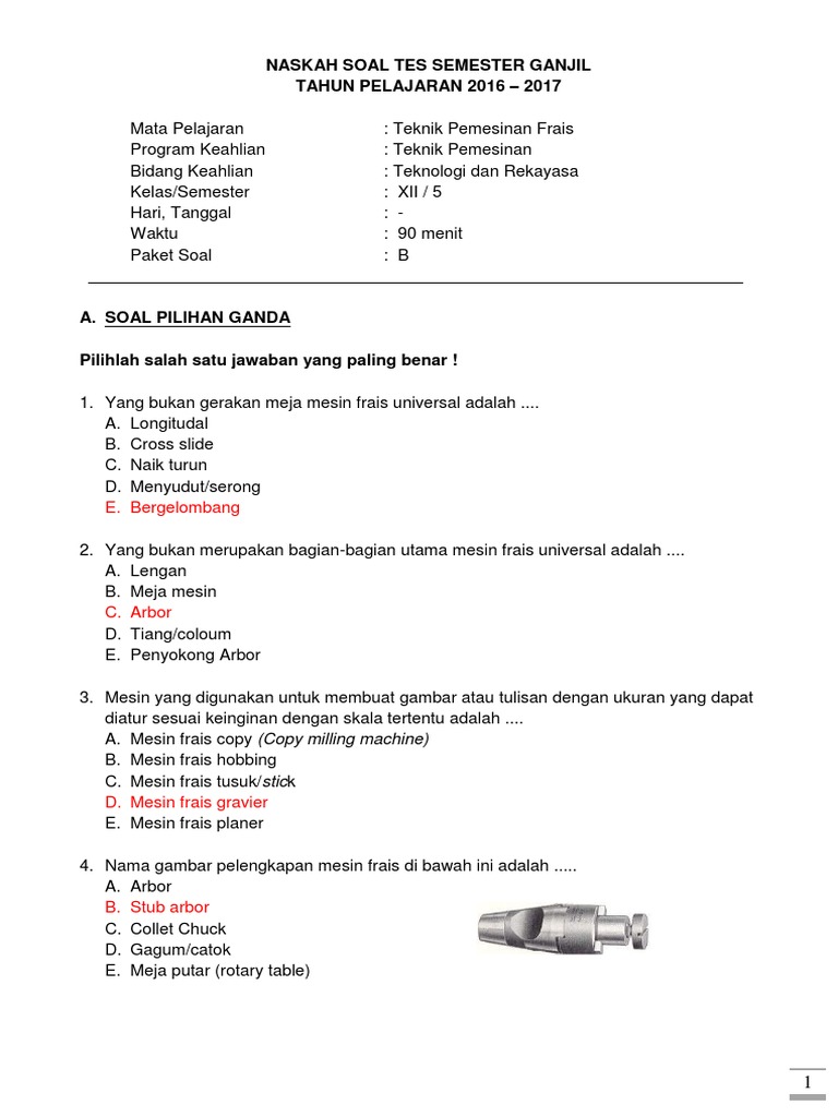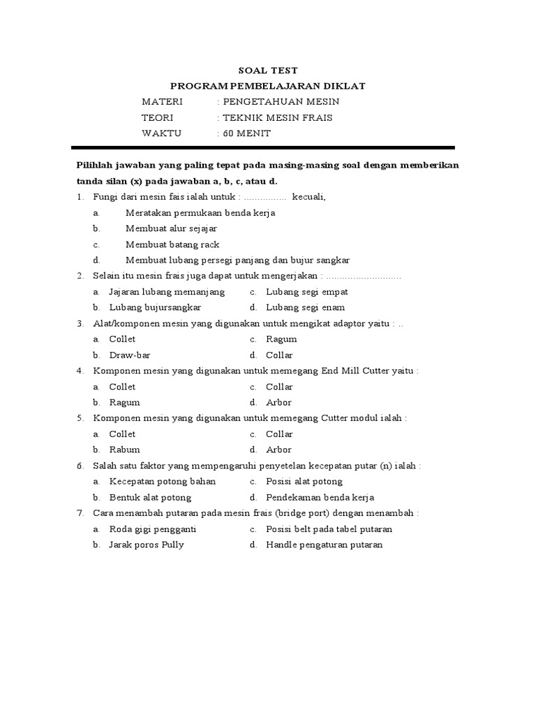 Contoh Soal Mesin Frais Kelas 12 - Contoh Soal Terbaru