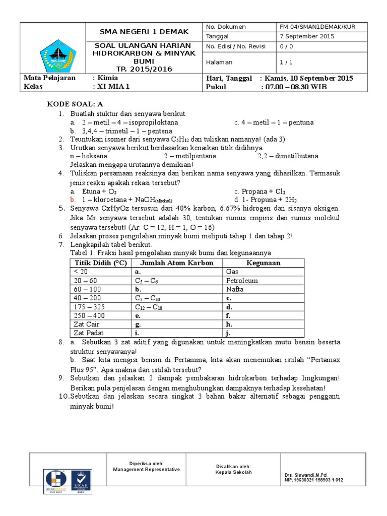 DOC) Soal Hidrokarbon Dan Minyak Bumi | Restu Dhamayanti …