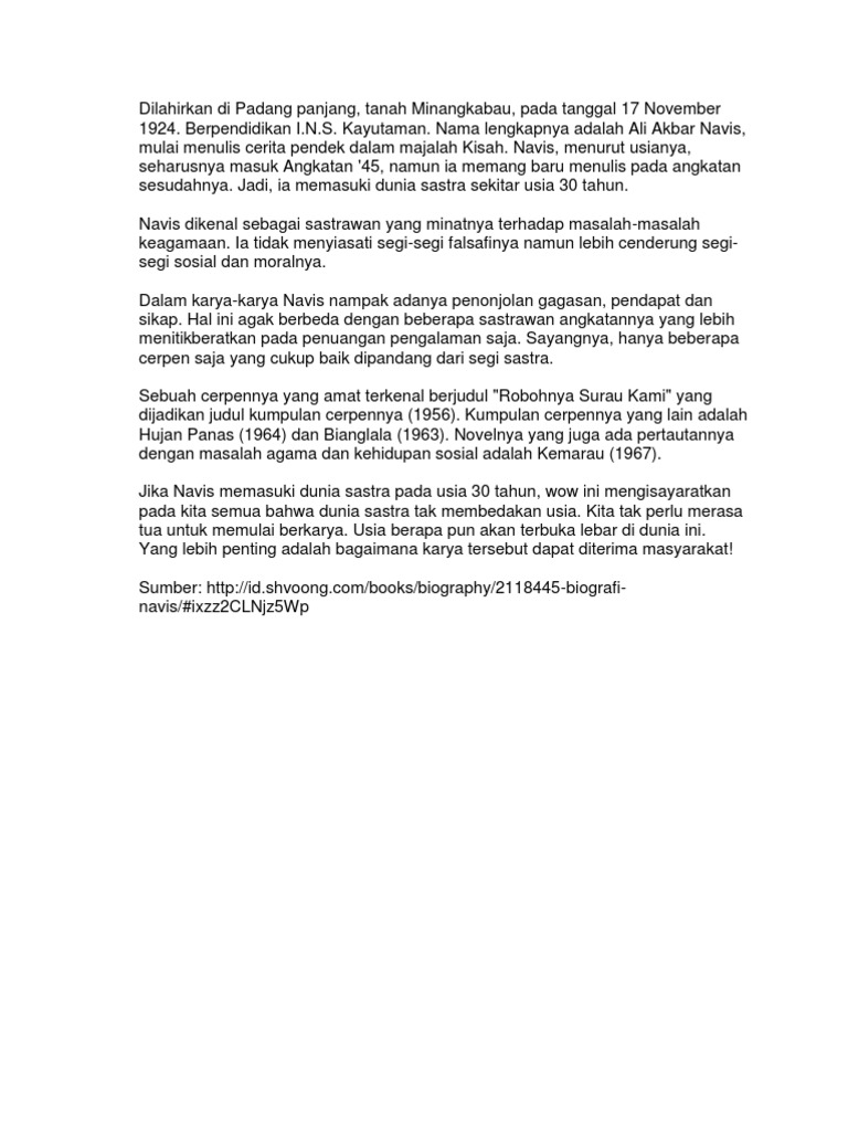 DOC) Cerpen Robohnya Surau Kami karya AA Navis | Nara Aska - Academia.edu