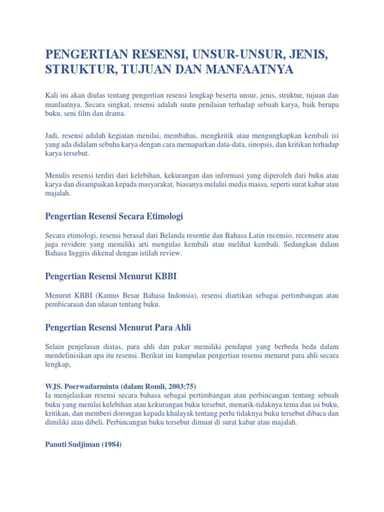 Pengertian Resensi, Unsur, Jenis, Tujuan, dan Manfaatnya | IndonesiaStudents.com