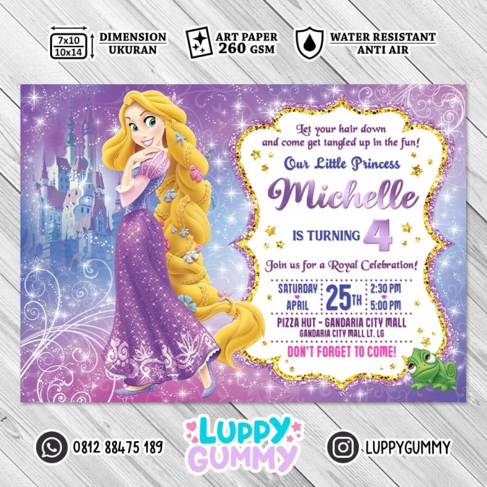 Jual Kartu Undangan Ulang Tahun Ultah Rapunzel Tangled Custom Invitation - 7x10 - Jakarta Barat - LuppyGummy | Tokopedia