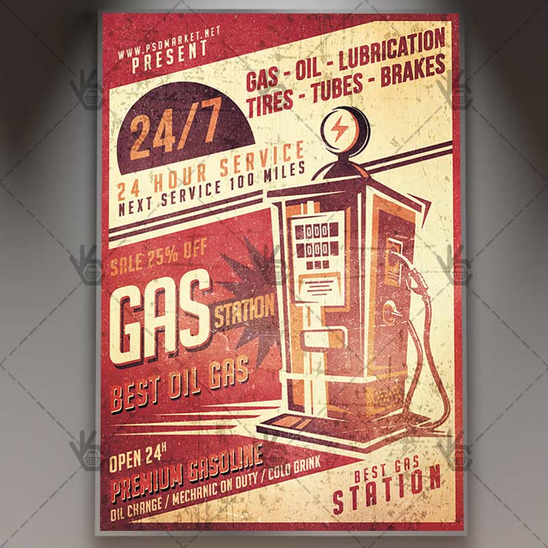 PSDmarket on Twitter: “Vintage Gas Station - Business Flyer PSD …