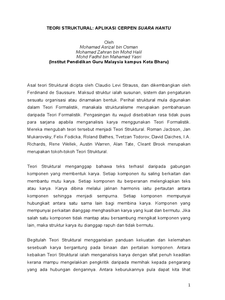 Teori Struktural Aplikasi Cerpen Suara Hantu