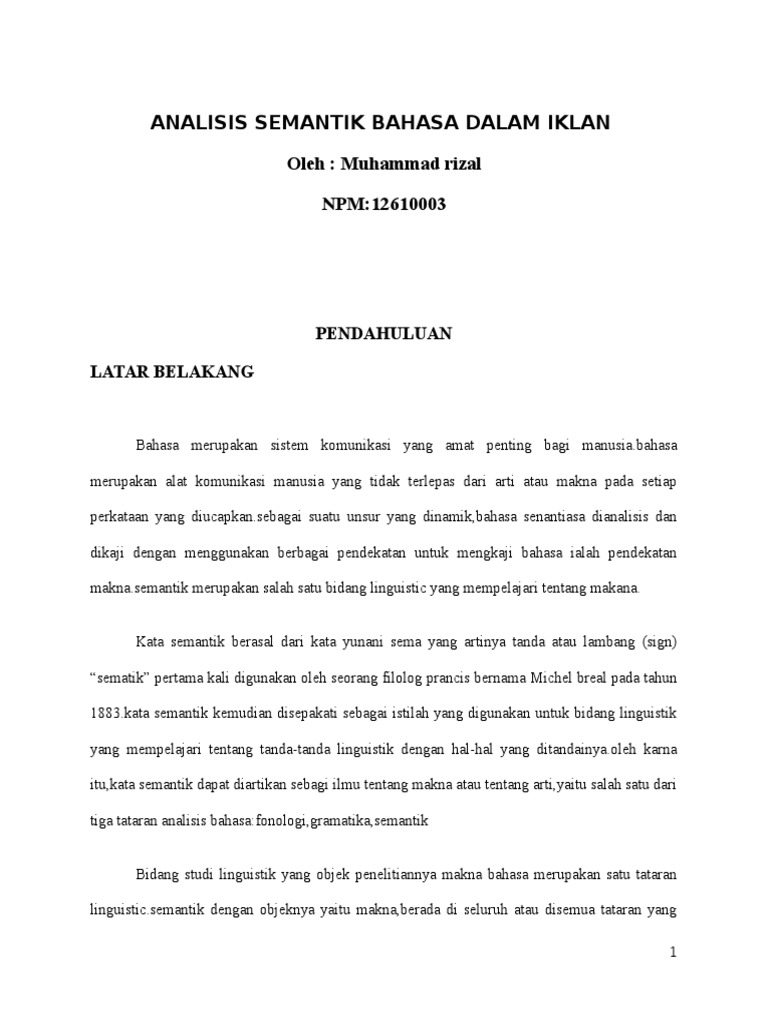 Analisis Semantik Bahasa Iklan Dalam Koran