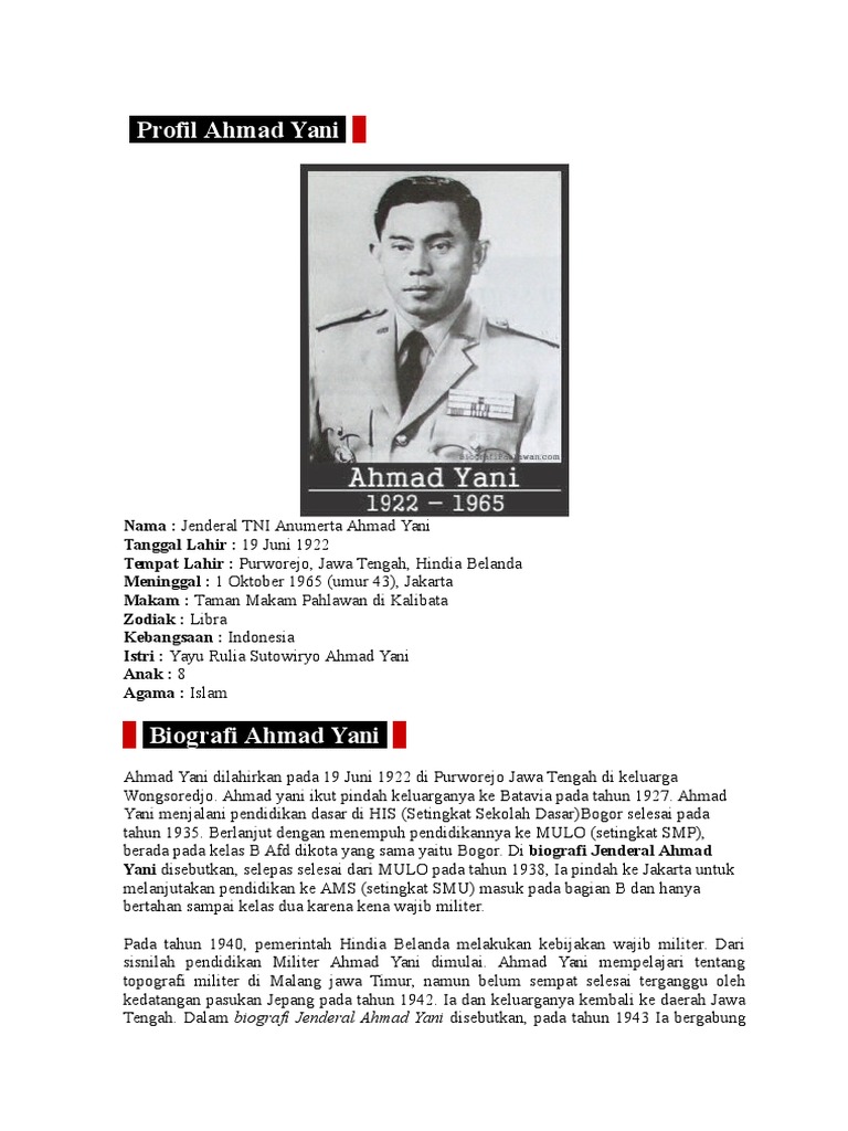 Biografi Jenderal Ahmad Yani - PDF Free Download