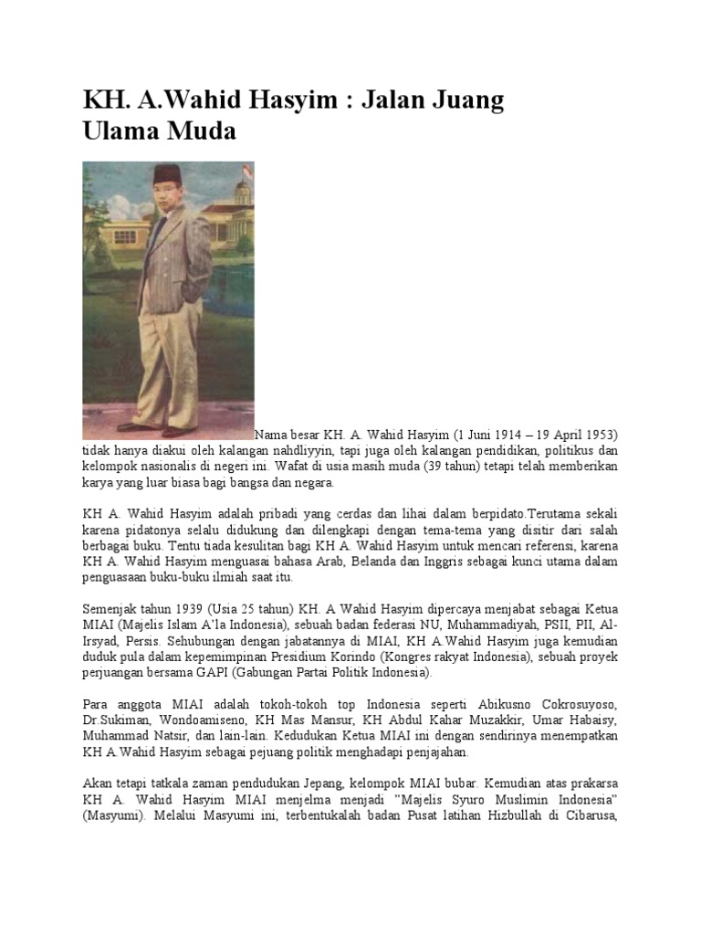Biografi KH. Wahid Hasyim | Profil Ulama › Laduni - Layanan Digital untuk Negeri