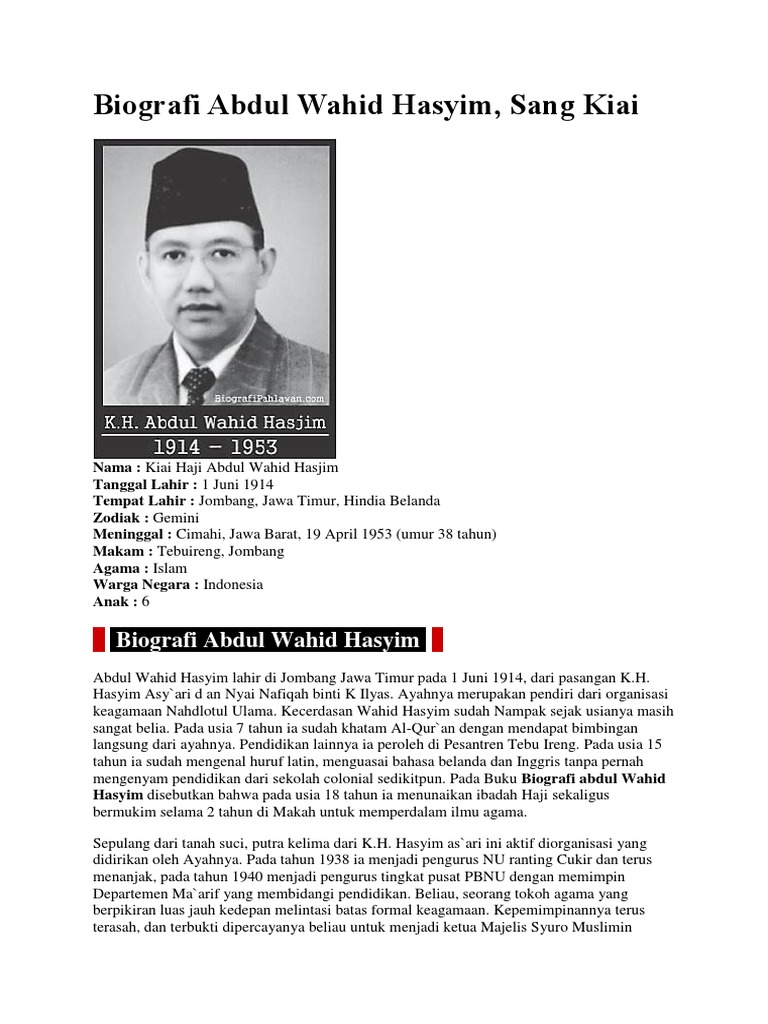 KH Abdul Wachid Hasyim - Tentang | Facebook