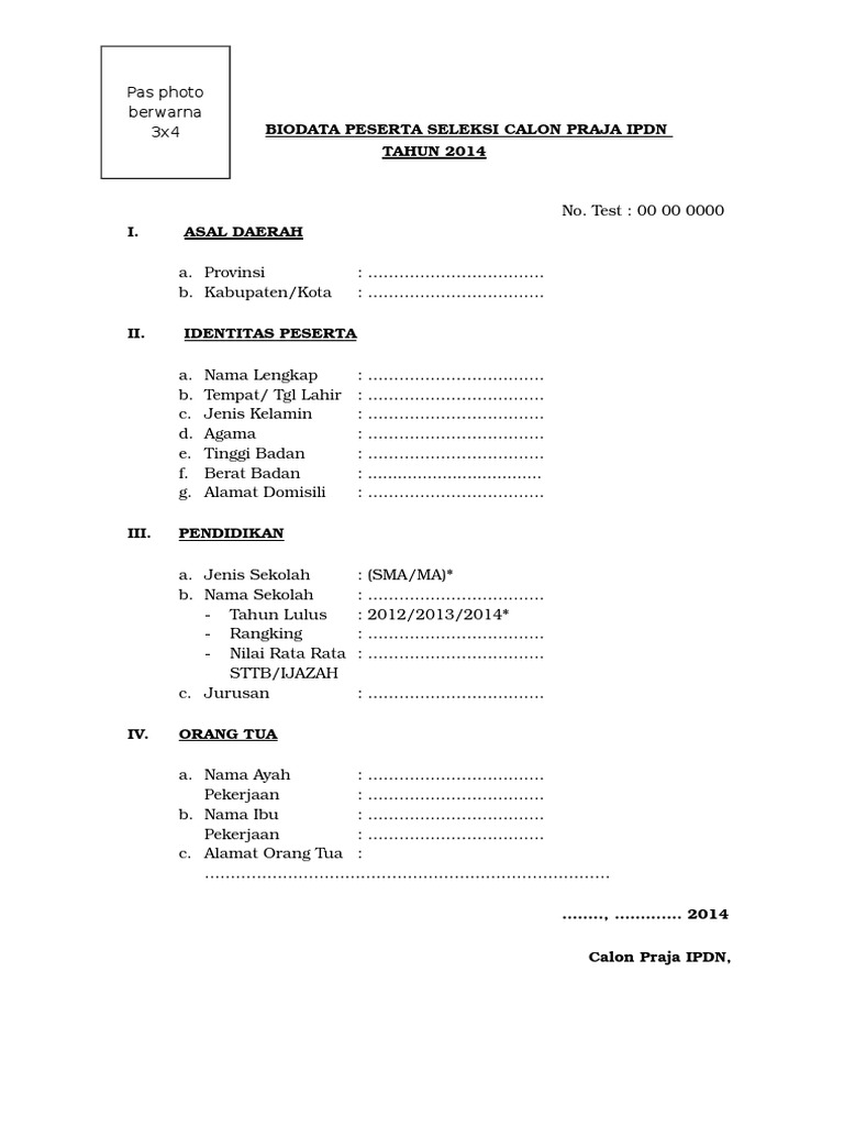 Contoh Biodata Orang Tua Lengkap - Contoh Kar