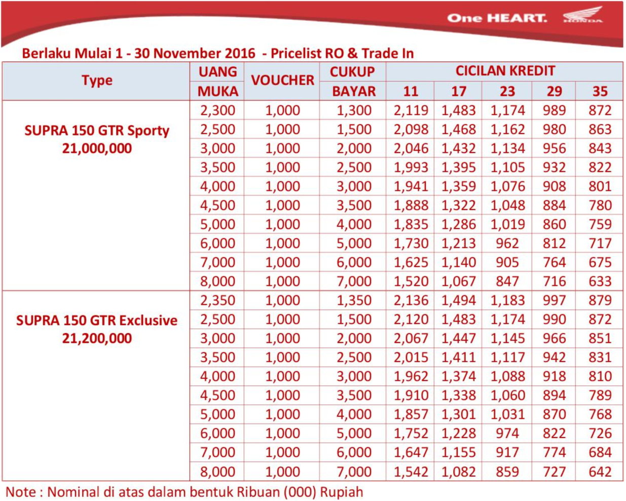 Harga Supra GTR150 Rp. 21.350.000 di Tasikmalaya dan Update Harga Honda Juni 2016 - WARUNGASEP