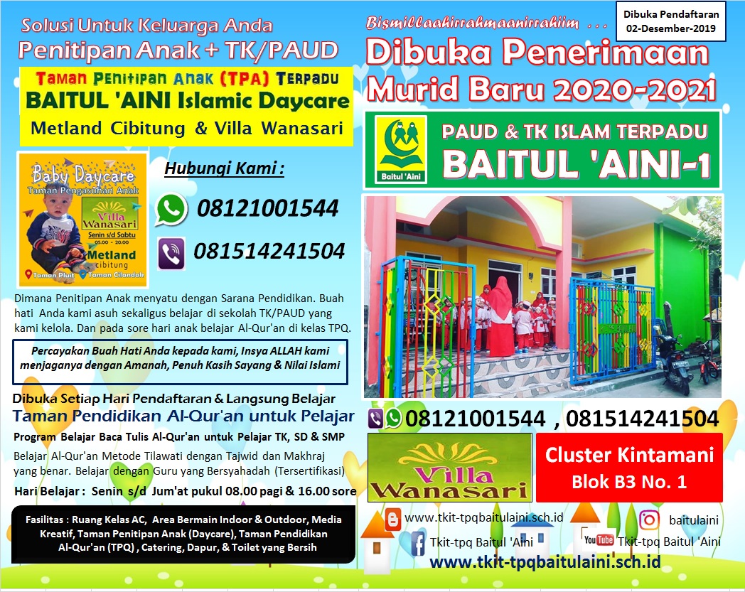 TKIT-TPQ BAITUL ‘AINI: Masih Dibuka Penerimaan Murid Baru TK, TPQ dan Daycare Baitul ‘Aini