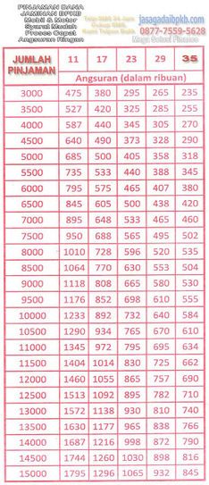 Daftar Tabel Angsuran Kredit Pinjaman Jaminan BPKB Terbaru | Bpkb-Ku