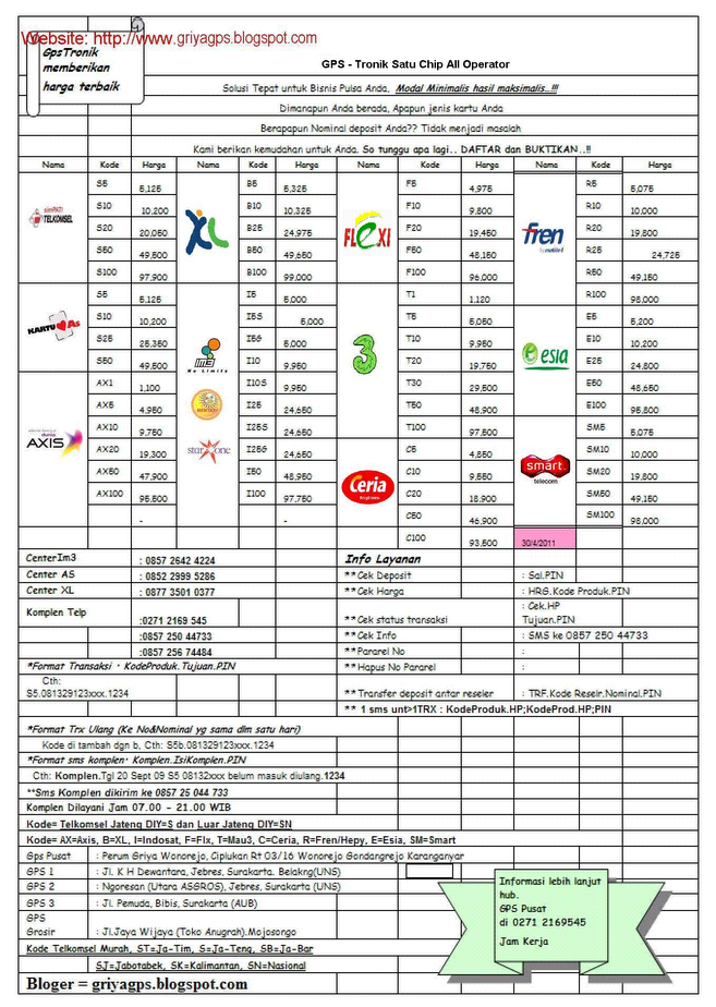 Griya Ponsel Solo: Brosur GPS, Transaksi All Operator Cepat, Akurat dan Murah.