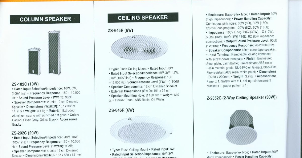 INFO ARYA : Ceiling speaker, Wall speaker, Column speaker Merk : TOA