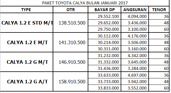 Dealer Toyota Calya Indramayu: 085647897006 (WA): Tabel Cicilan Toyota Calya Indramayu Desember 2016 - Januari 2017