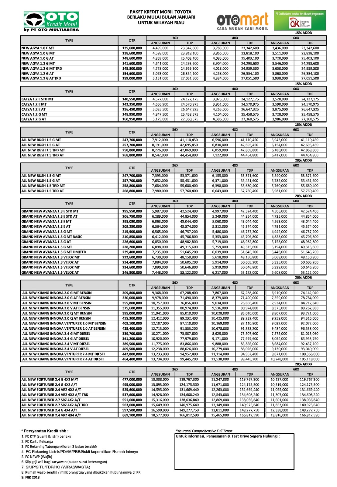 Paket Kredit OTO Multiartha Kendaraan Toyota Pekanbaru-Riau 2018 - salestoyotariau