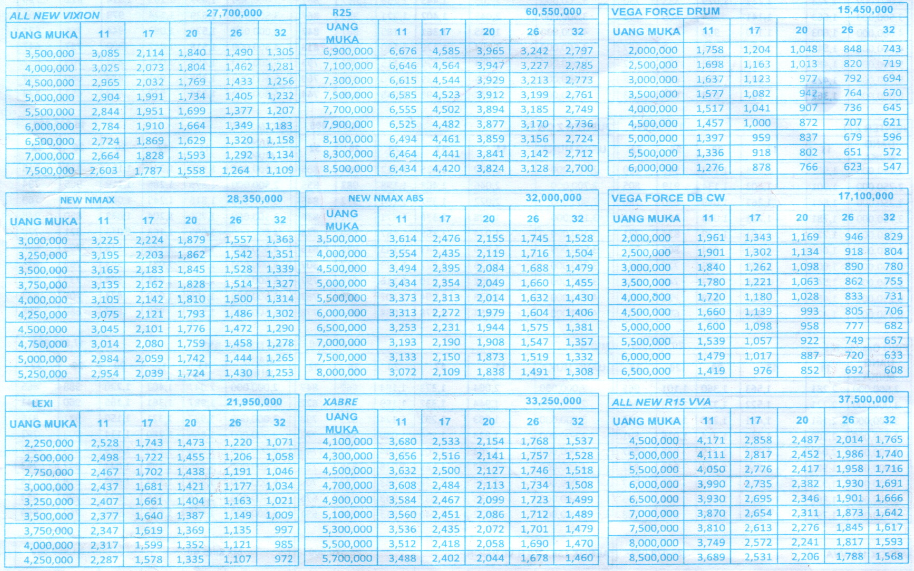 tabel angsuran motor bfi 2019 - MASDULL NET