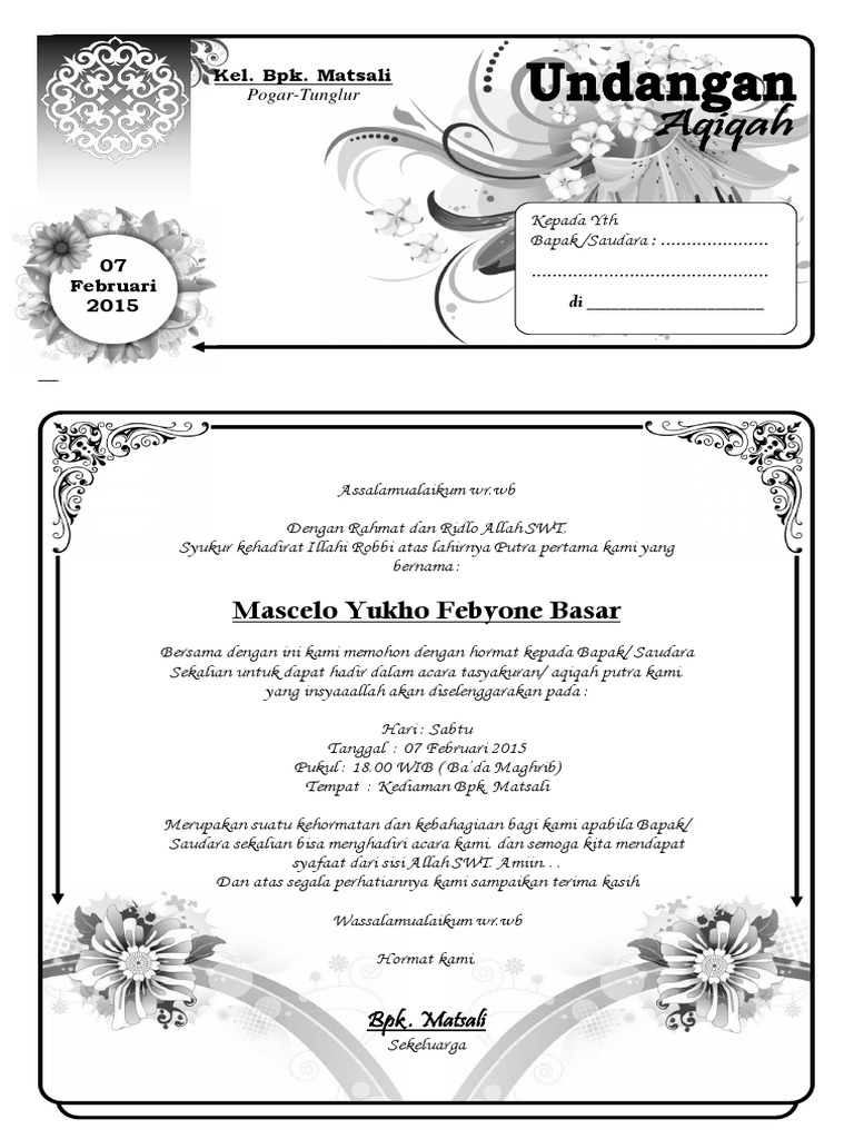 DOC) Contoh Surat Undangan Aqiqah | Kayancyber Kayancyber - Academia.edu
