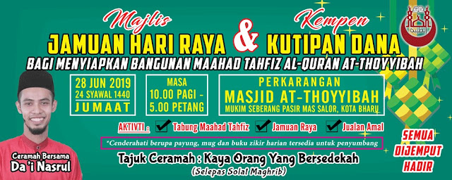 MASJID AT-THOYYIBAH KPG. SEBERANG PASIR MAS: CERAMAH PERDANA: KAYA ORANG YANG BERSEDEKAH