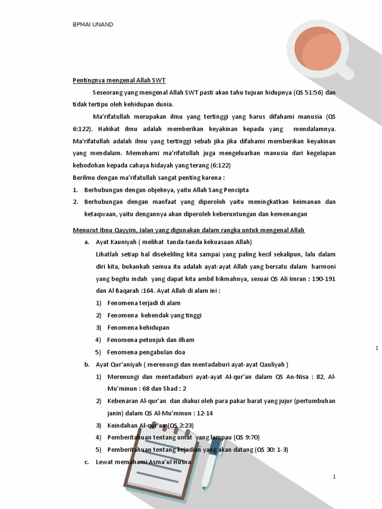 Ma’rifatlulah, Mengenal Allah, Prof. Dr. Irwan Prayitno. Materi …