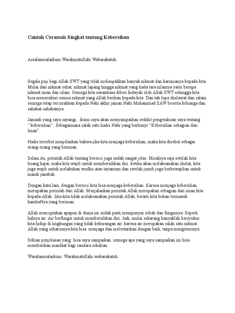 Ceramah Singkat tentang Kebersihan - InfoKekinian.Com