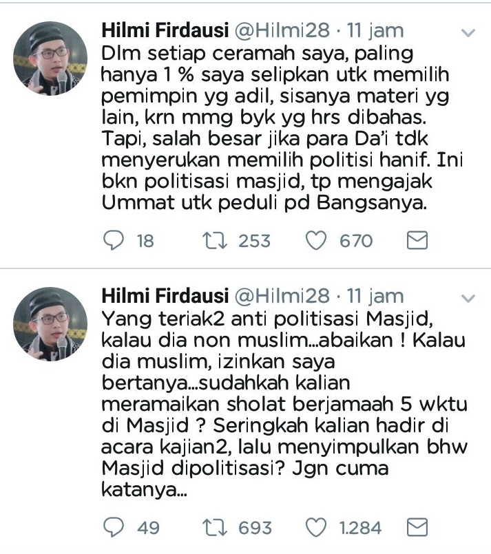 Terus Ngoceh, Makin Terang Ustad Hilmi Gagal Paham Politisasi Masjid