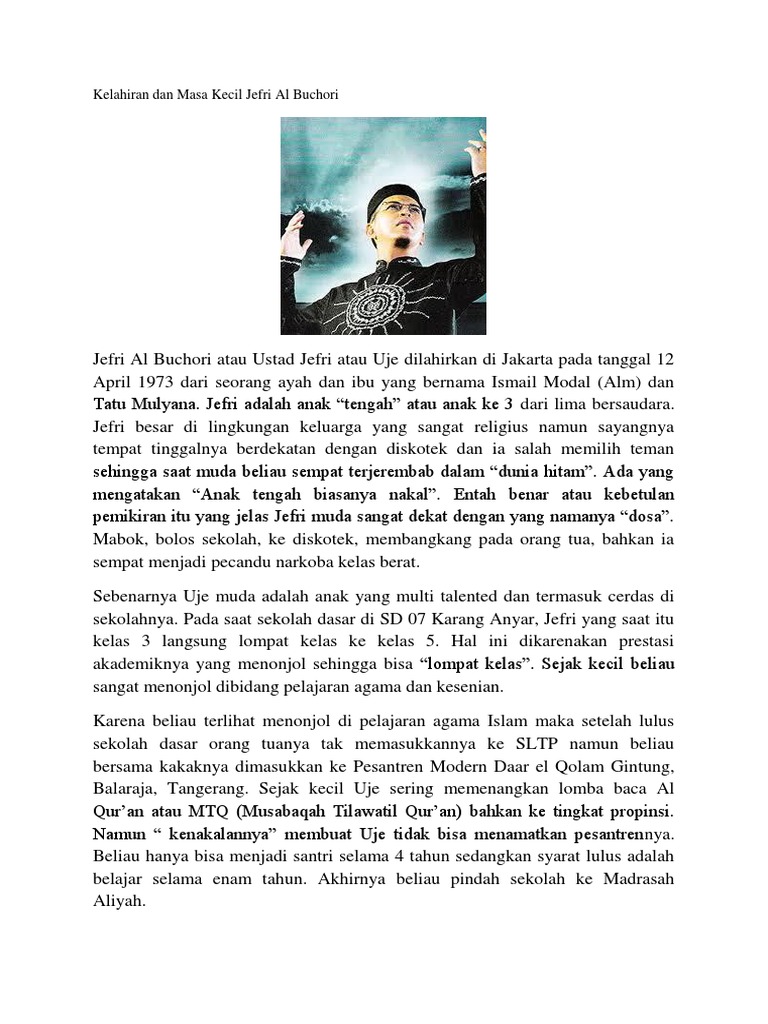 Biografi Ustadz Jefri Al Bukhori (Uje) - 1001-KISAH ISLAMI