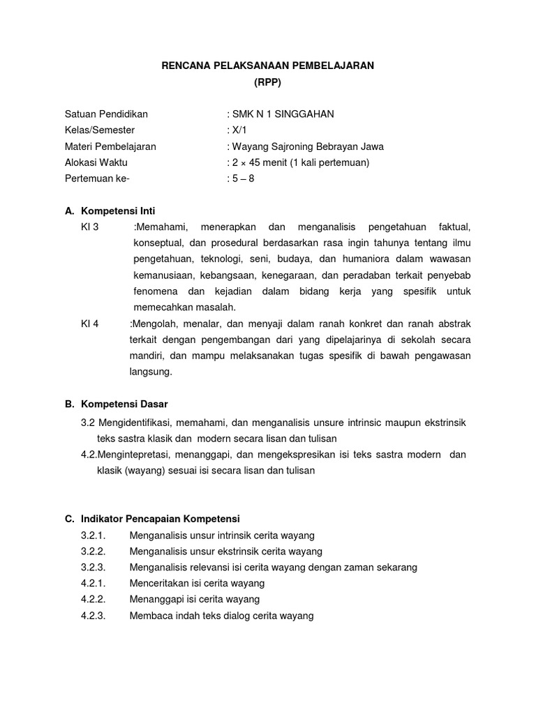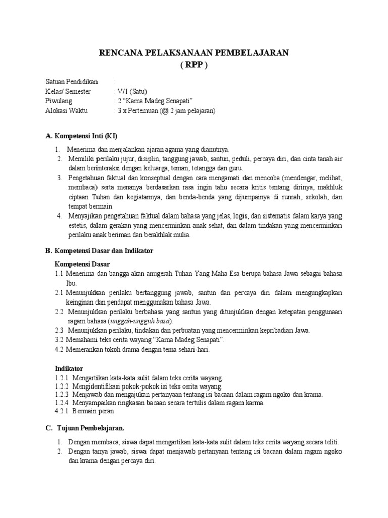 rpp bahasa jawa kelas v semester 1 piwulang 2