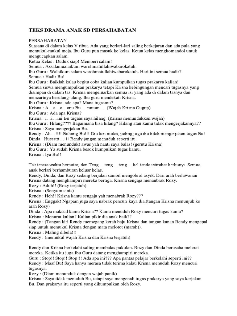 Kumpulan Cerita Lucu: Cerpen Anak Sd Tentang Persahabatan