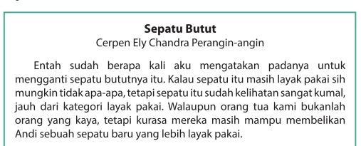 Cerpen sepatu butut By Ely chandra perangin angin Watak andi? Latar tempat pada cerpen? Latar - Brainly.co.id