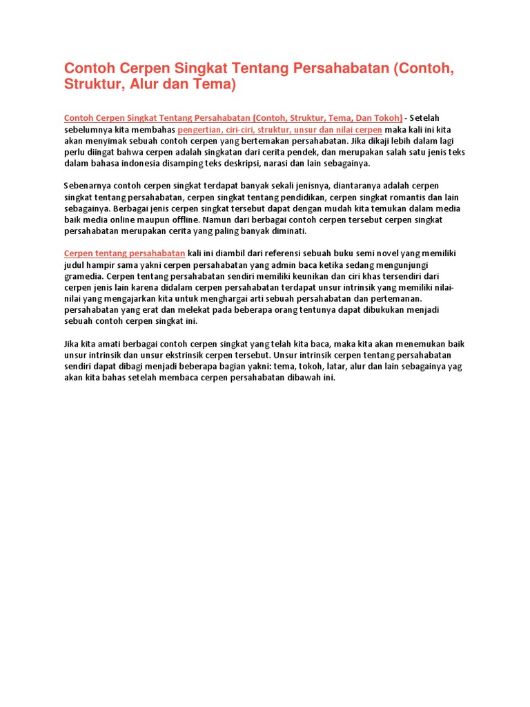 Contoh Cerpen Persahabatan Beserta Unsur Intrinsiknya Dan …