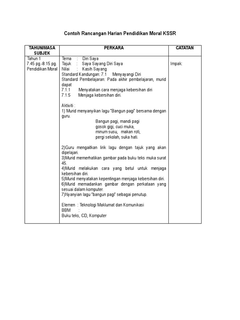 Rph Pendidikan Moral Tahun 1 Sumber Pendidikan - Cute766